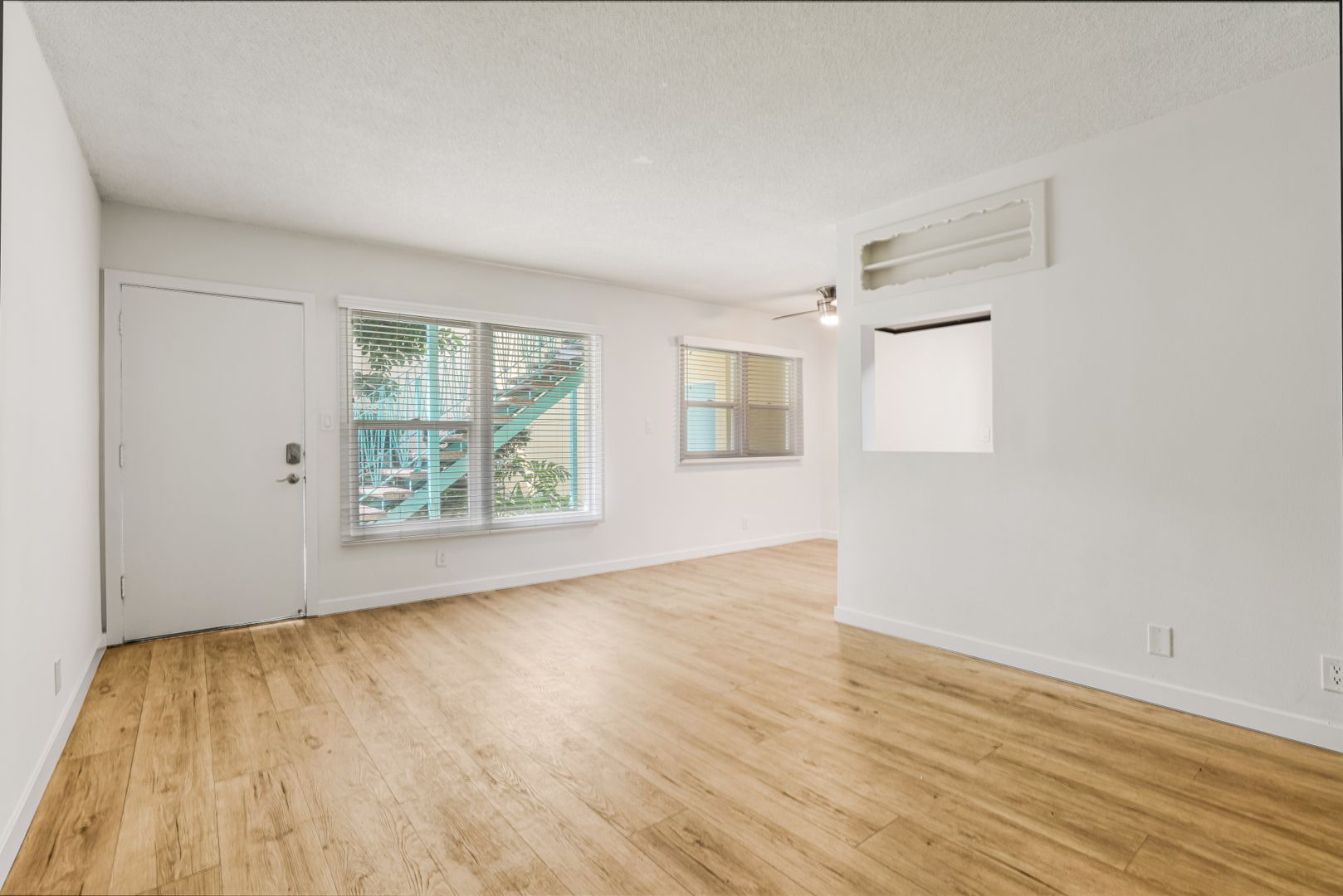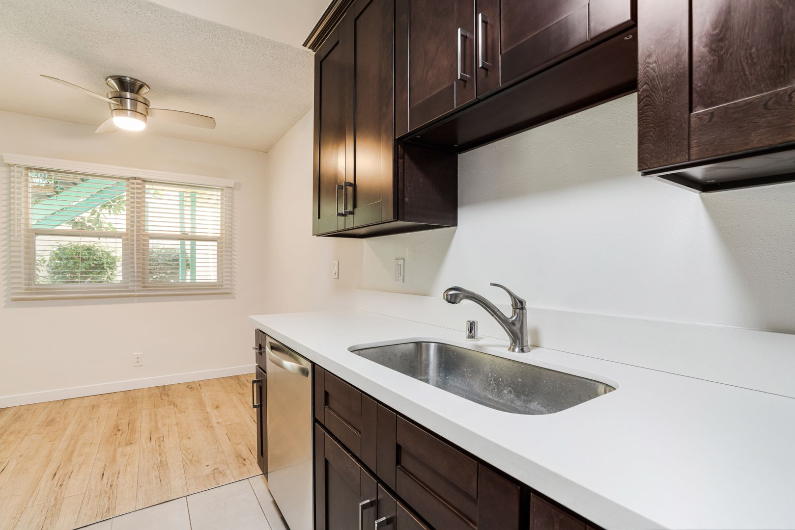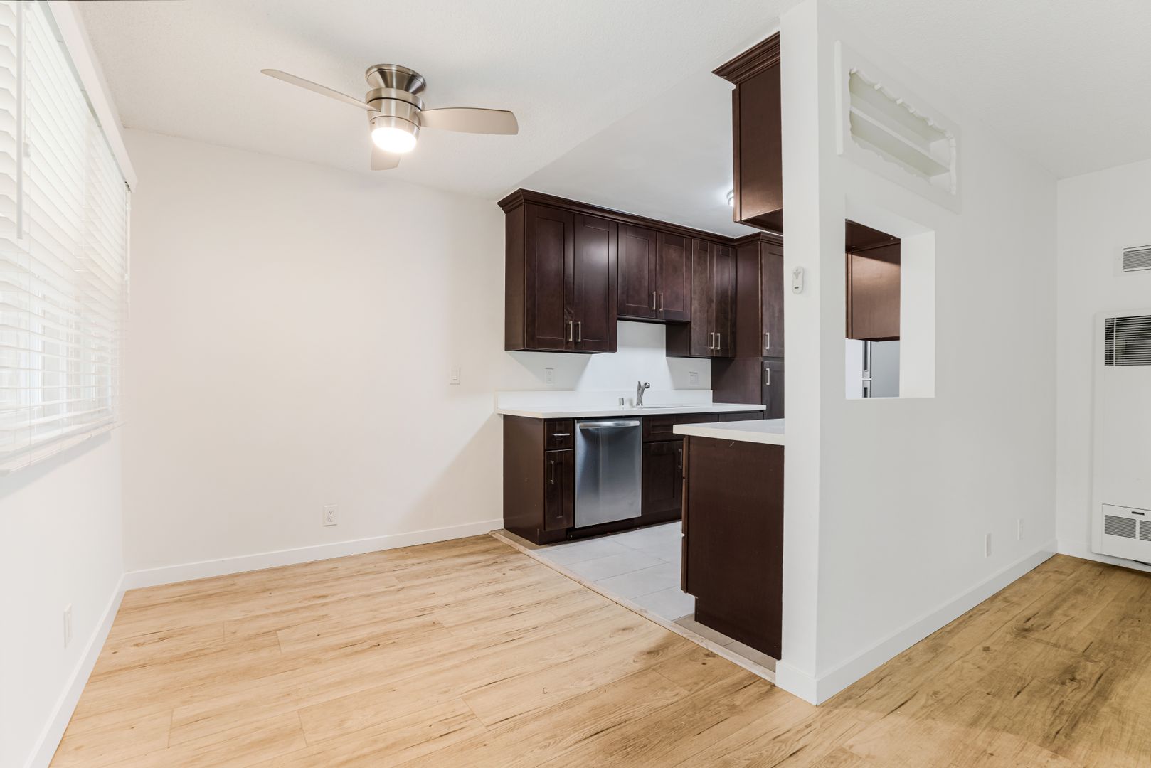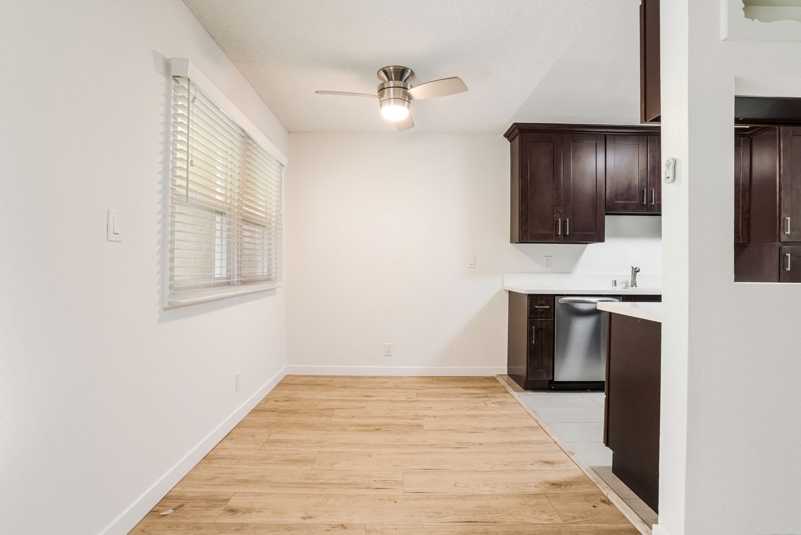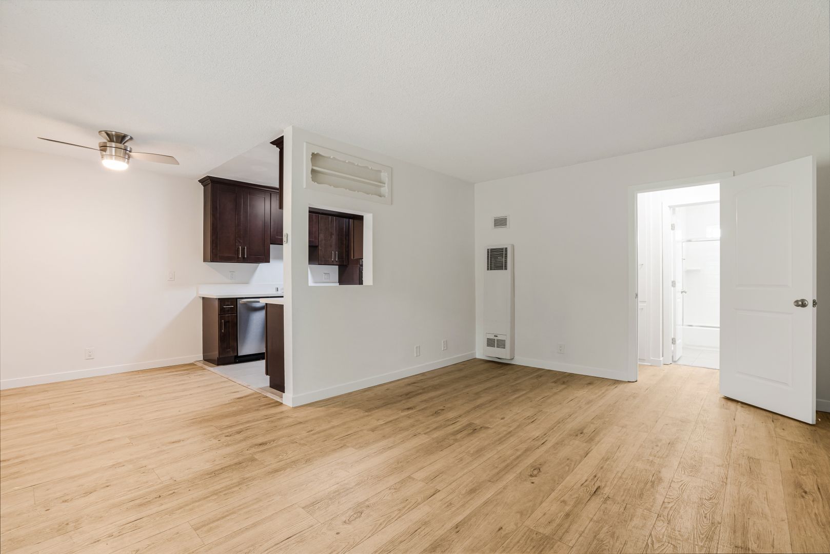 Stay cool and comfortable with the ceiling fan, perfect for those warm California days.
