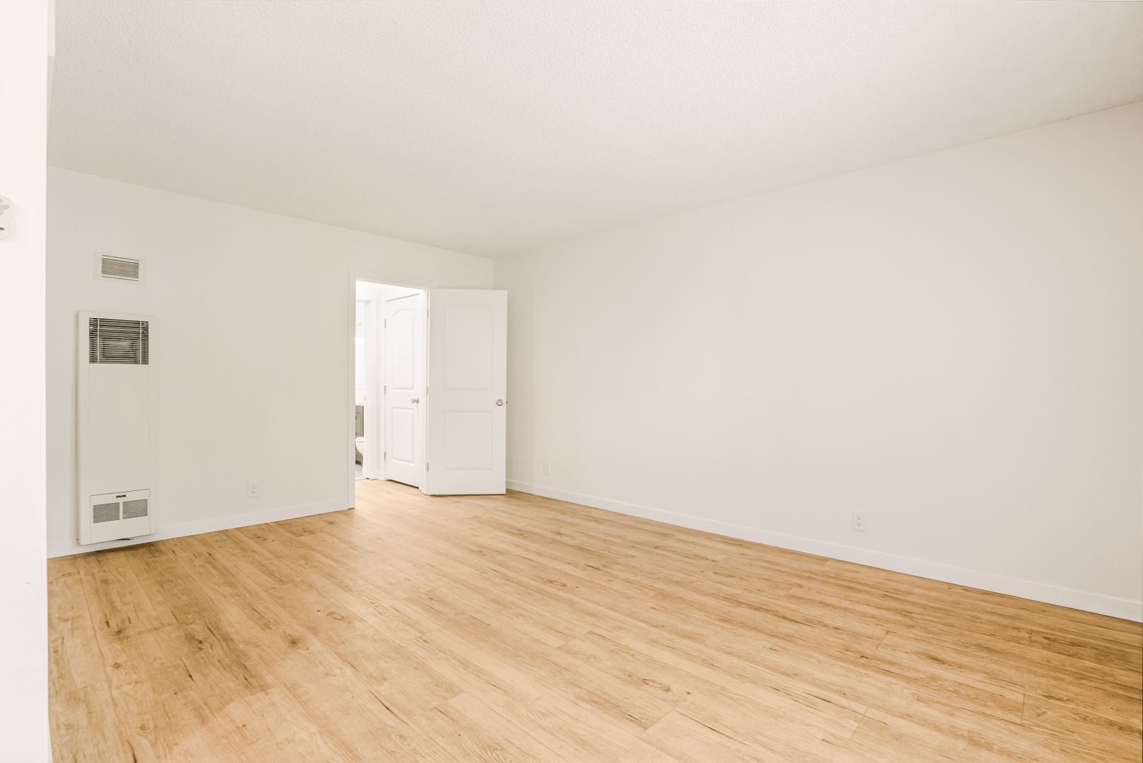Step inside and be greeted by the beautiful wood-style laminate flooring that adds a touch of elegance to the space.