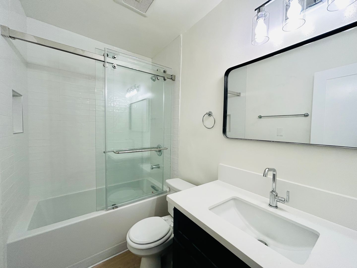 Located on the first floor and facing the courtyard is this bright newly renovated one-bedroom apartment home features wood-style vinyl plank flooring, air conditioning, a dedicated dining area with a ceiling fan, also a fully equipped kitchen with stainless steel appliances.