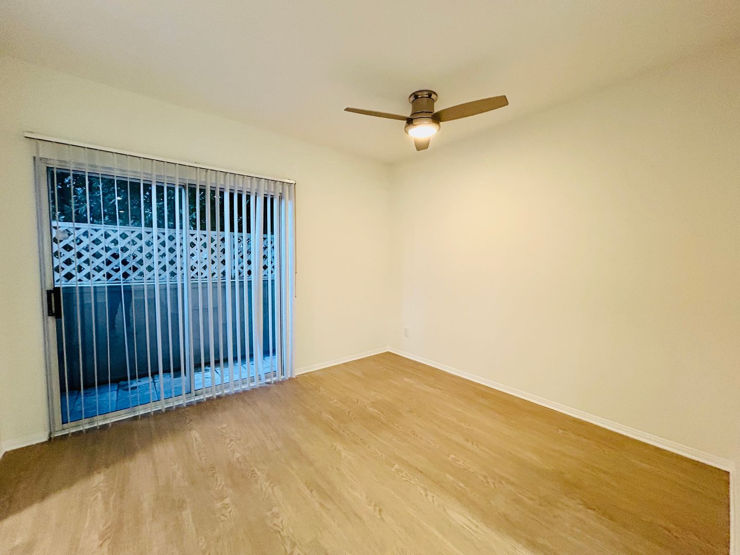 Come by to see our spacious one bedroom apartment in Palms! This apartment also has central air conditioning and heating, wood style vinyl plank flooring, large closet space, ceiling fan, stainless steel appliances, and two private patios.