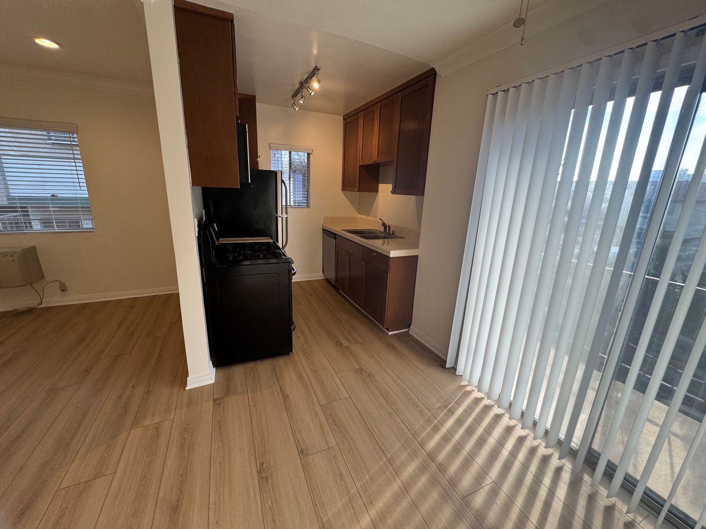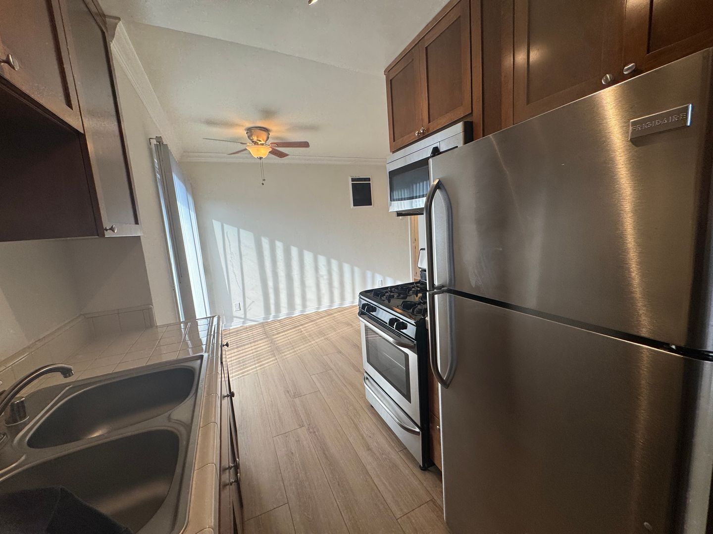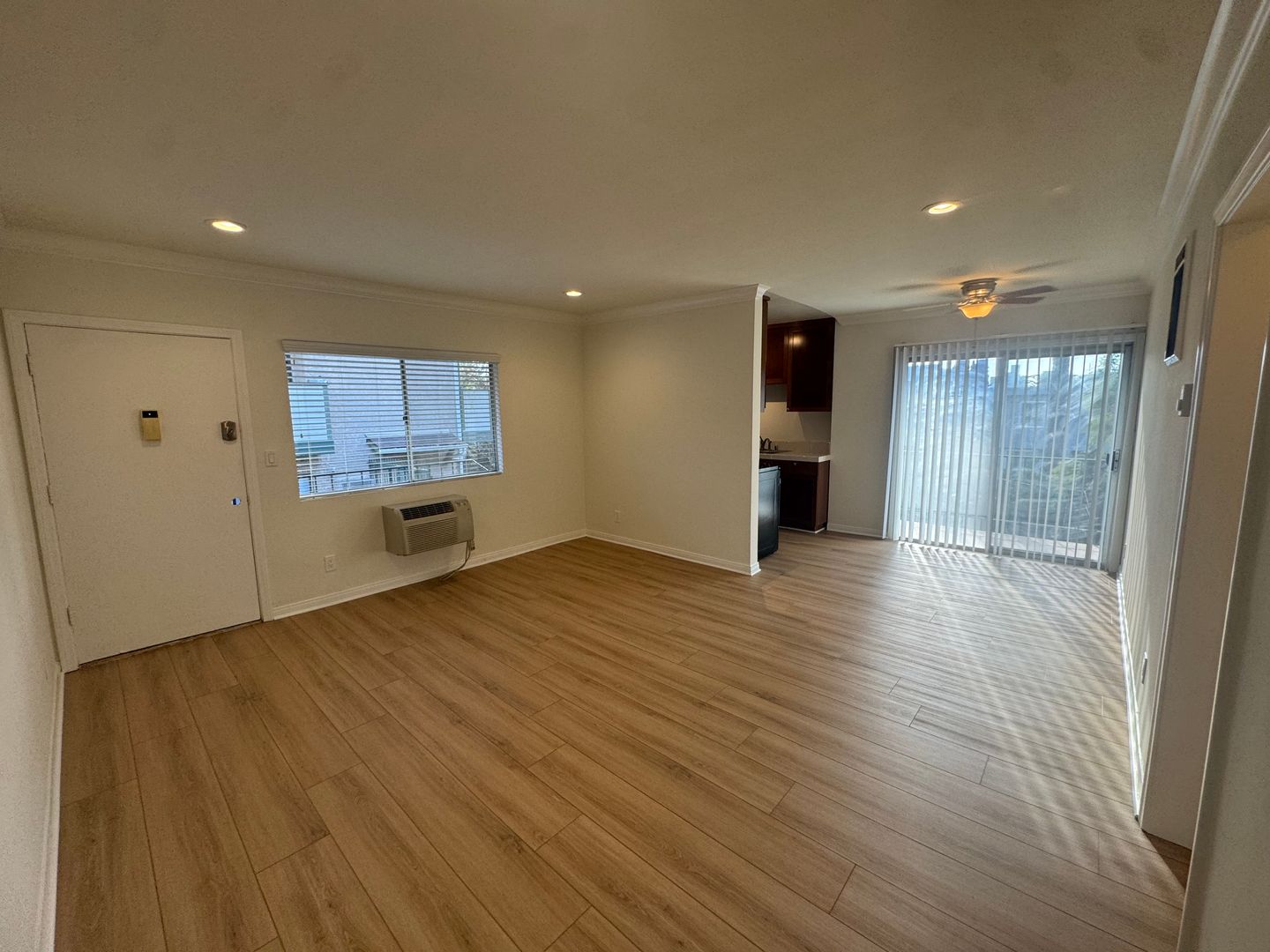 This spacious one-bedroom one-bathroom apartment has air conditioning, wood-style laminate flooring, stainless steel appliances, recessed lighting, balcony, ceiling fan, mirrored closet doors, and keyless electronic entry. Don't miss out on this one-of-a-kind apartment!