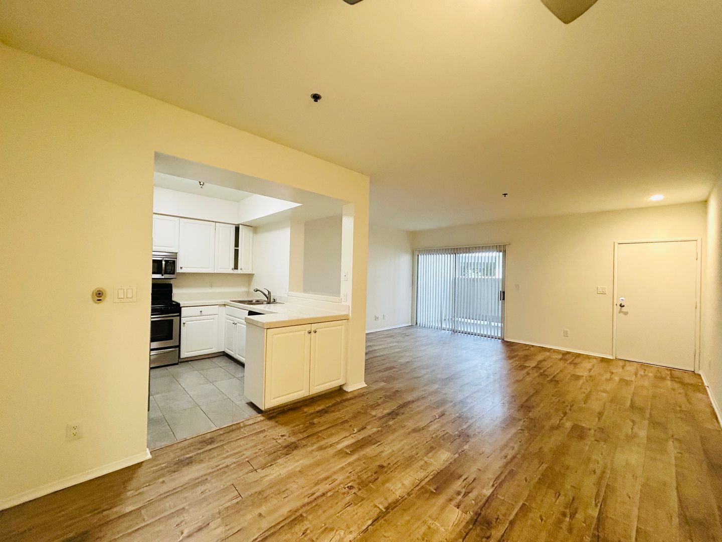 Come by to see our spacious one bedroom apartment in Palms! This apartment has central air conditioning and heating, wood-style laminate flooring, mirrored closet doors, ceiling fan, stainless steel appliances, and private patio.
