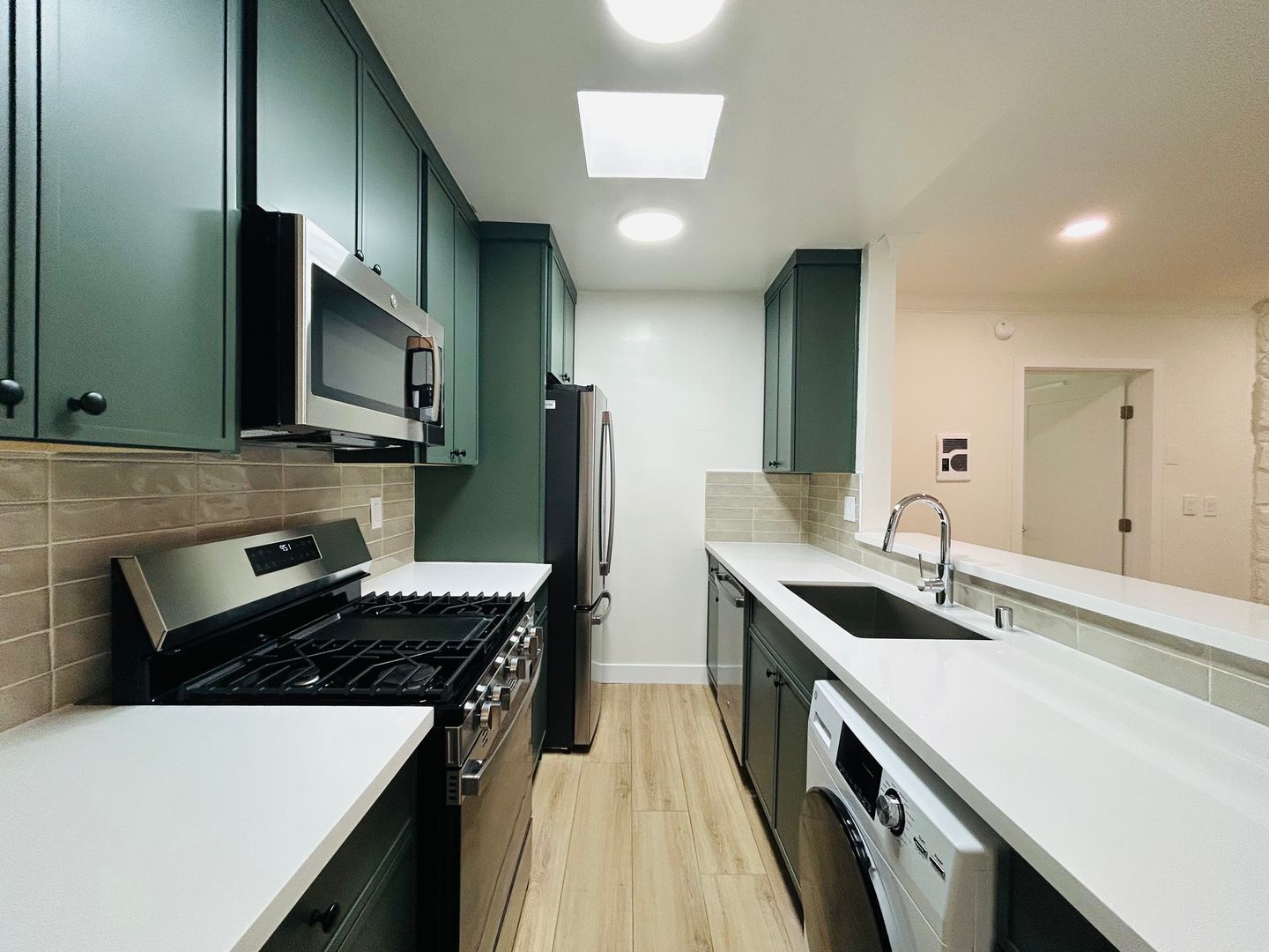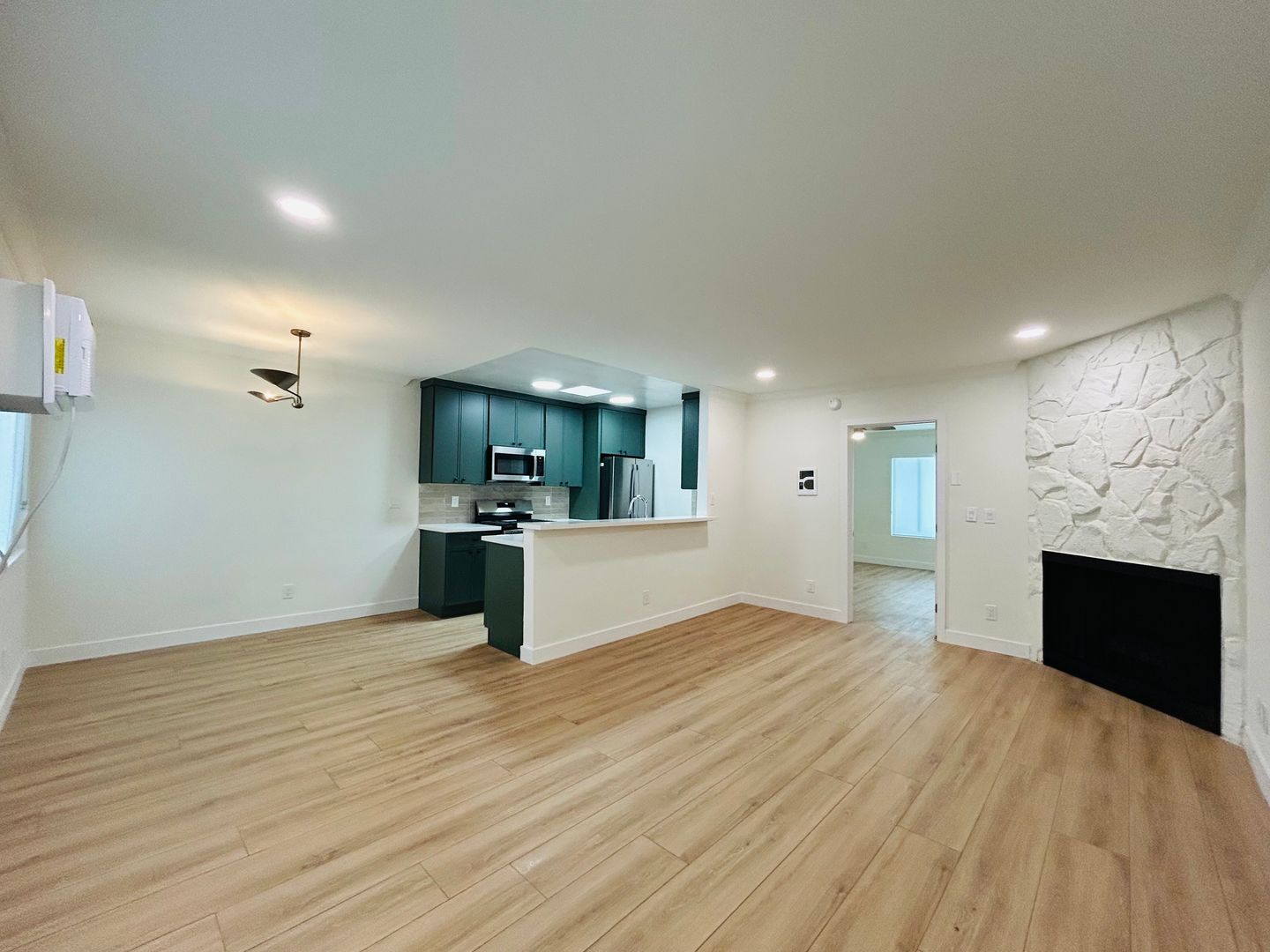 This beautiful renovated one-bedroom one-bathroom apartment offers a comfortable and convenient living experience! Step inside and be greeted by the modern and stylish design, featuring wood-style vinyl plank flooring and recessed lighting that creates a warm and inviting atmosphere. The apartment is equipped with stainless steel appliances, perfect for those who love to cook and entertain. Stay cool during the hot summer months with the air conditioning system, and enjoy the cozy ambiance provided by the fireplace during the cooler evenings. Make laundry a hassle free chore with our in unit washer/dryer combo.