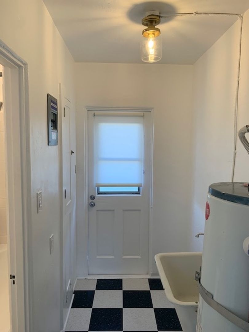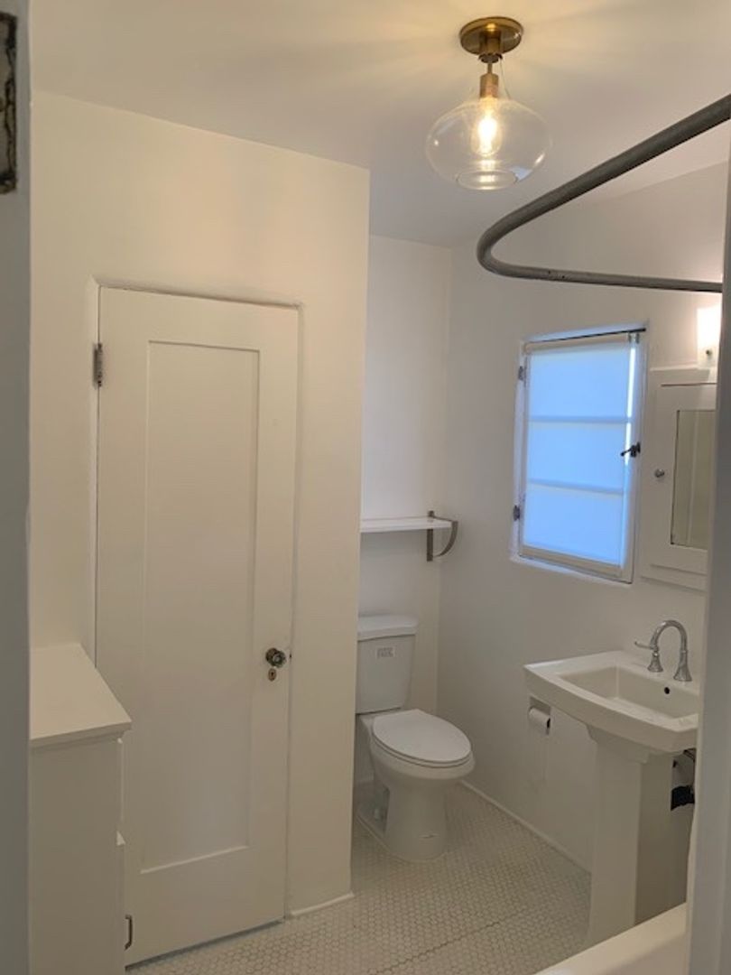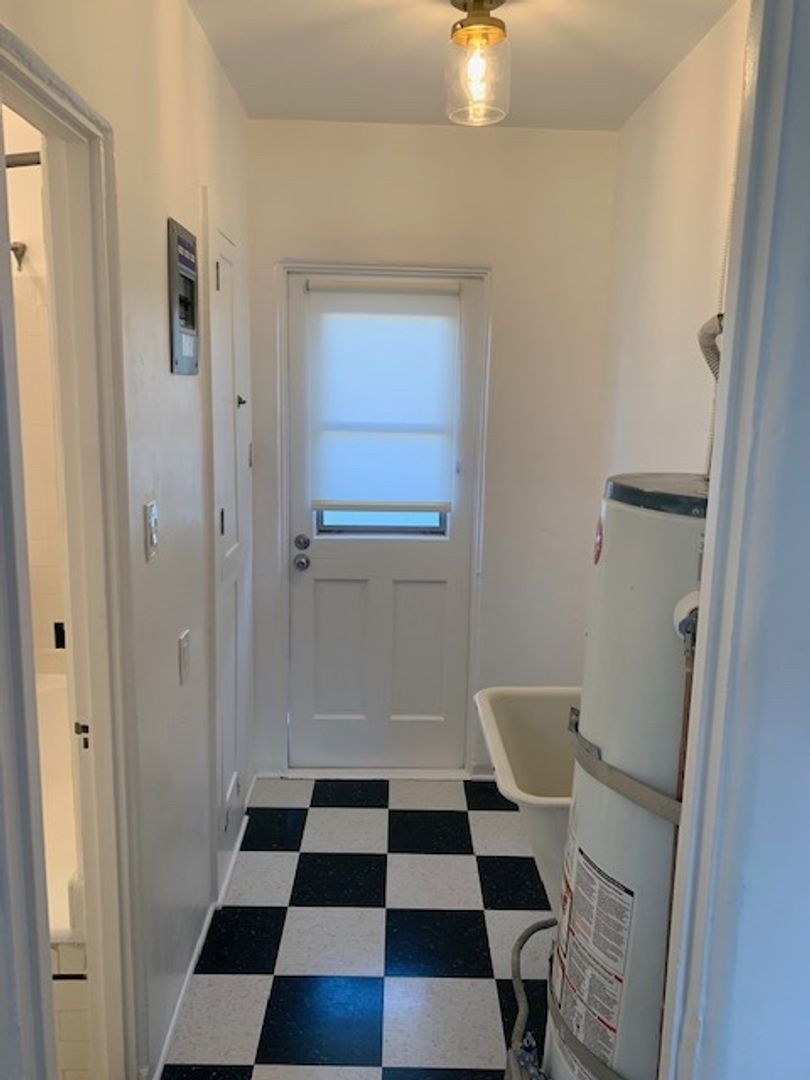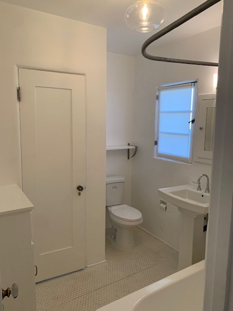 Located in the vibrant city of Santa Monica, on a quiet residential street, this Spanish bungalow-style apartment offers a perfect blend of modern convenience and timeless charm. Step inside and experience a living room with beautiful oak floors. The kitchen comes equipped with a gas stove, fridge, and countertop microwave. Make laundry day an easy going task with your in unit washer and dryer. The apartment features a spacious bedroom and a well-appointed bathroom. This apartment also features a spacious front yard perfect for an outdoor yard set.