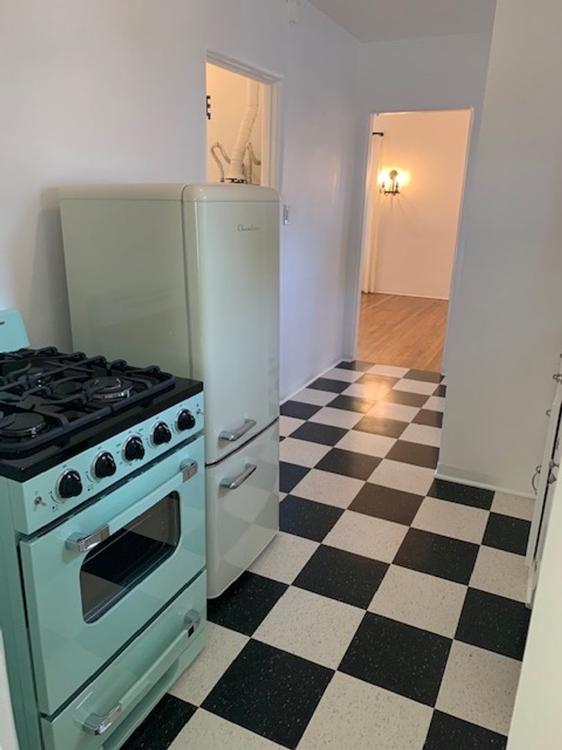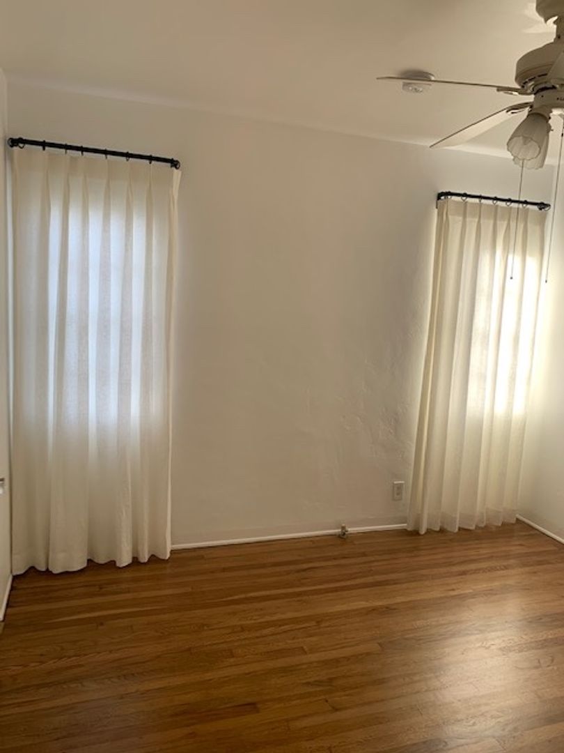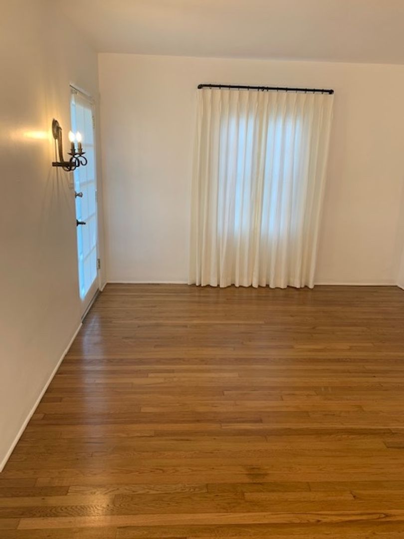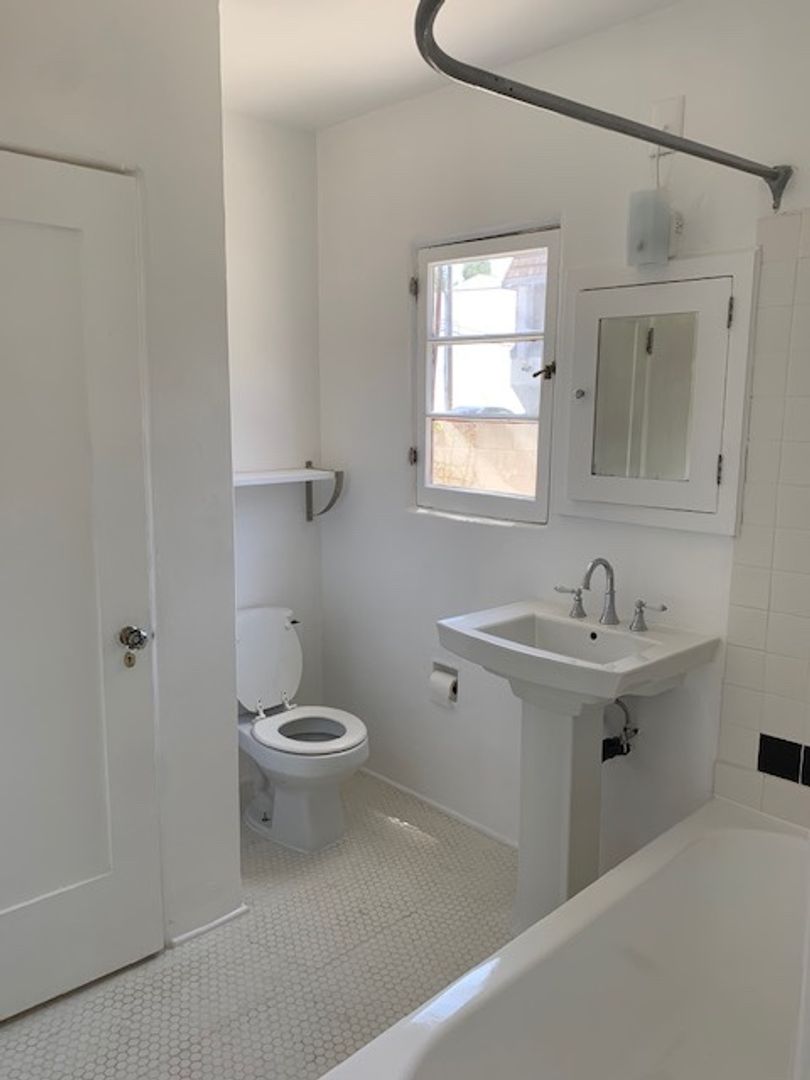 Located in the vibrant city of Santa Monica, on a quiet residential street, this Spanish bungalow-style apartment offers a perfect blend of modern convenience and timeless charm. Step inside and experience a living room with beautiful oak floors. The kitchen comes equipped with a gas stove, fridge, and countertop microwave. Make laundry day an easy going task with your in unit washer and dryer. The apartment features a spacious bedroom and a well-appointed bathroom. This apartment also features a spacious front yard perfect for an outdoor yard set.